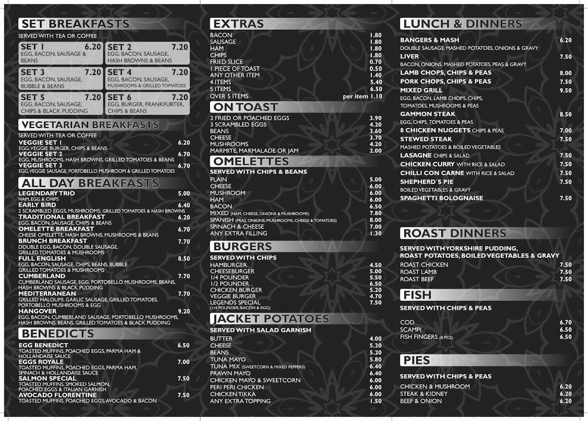 Legends Café (London Colney) Menu